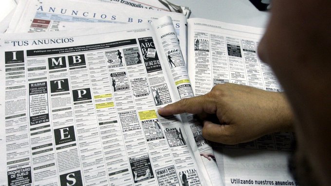 Hace tiempo que los colectivos y asociaciones feministas vienen reclamando la desaparición en prensa de los anuncios de contactos y prostitución por considerar que la publicidad en la que las mujeres ofrecen su cuerpo y sexo, a cambio de dinero, atenta contra la dignidad. pic.twitter.com/Pd7wR4N78I