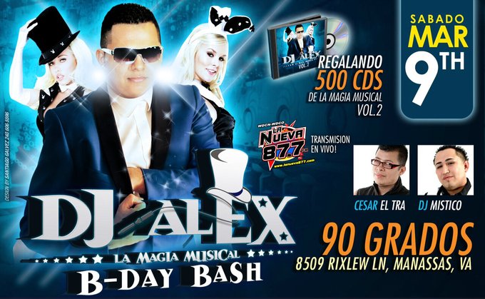Hay Party! Marzo 9 @djalexlmm Bday Bash en 90GRados Nightclub junto a @CesarElTra y Dj Mistico! Regalando 500 Cds pic.twitter.com/AcdFrqL50b